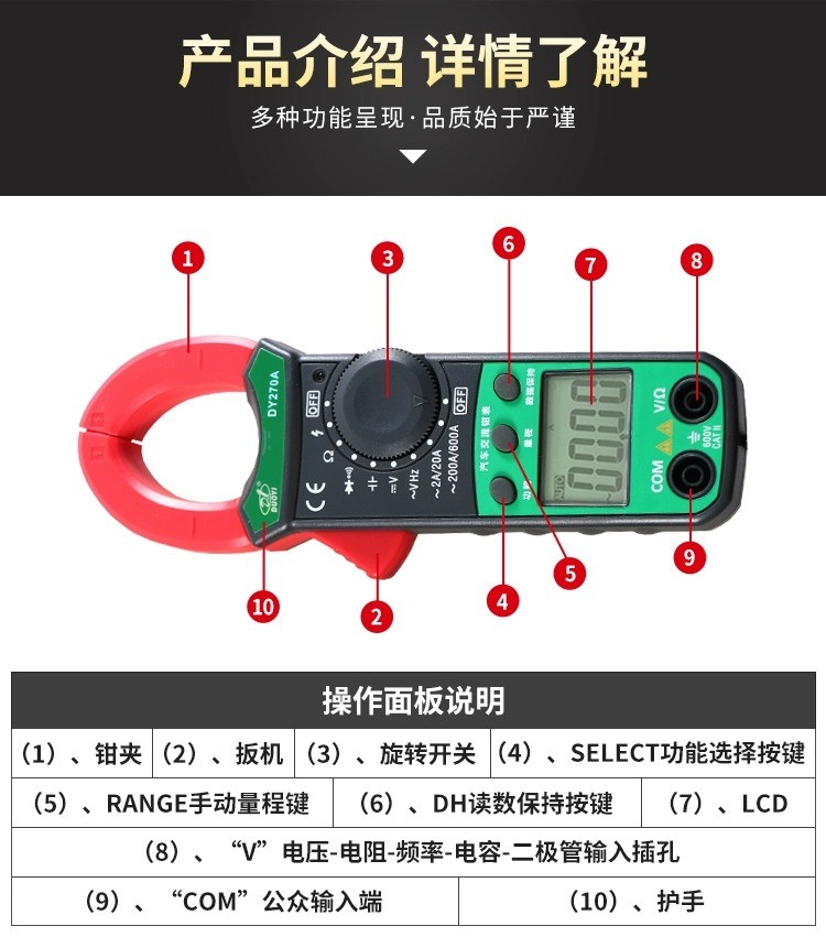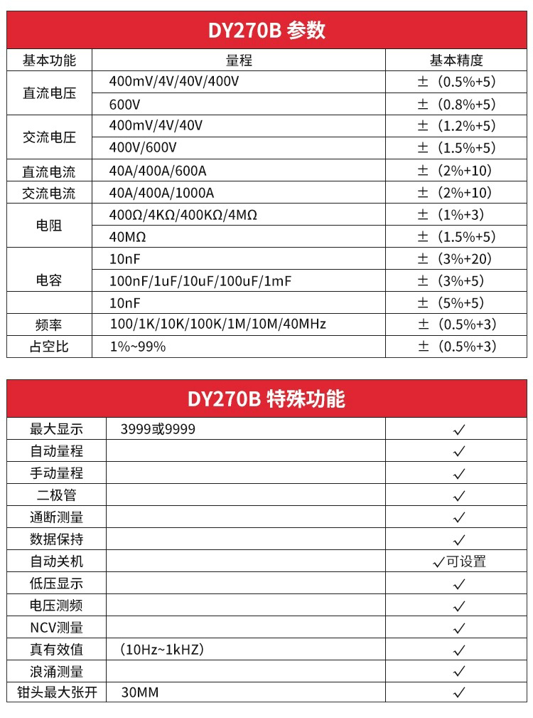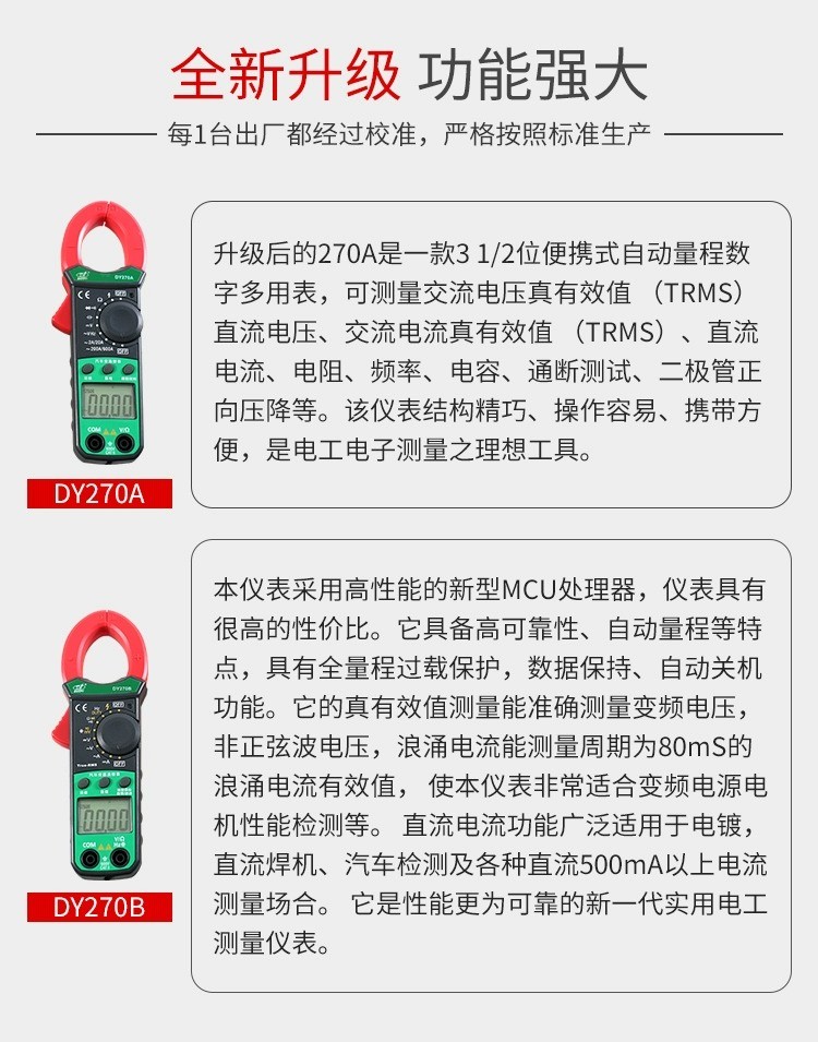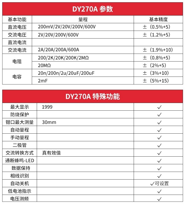 DY270A/DY270B汽车漏电测试仪漏电检测仪漏电流钳表交直流漏电流钳表