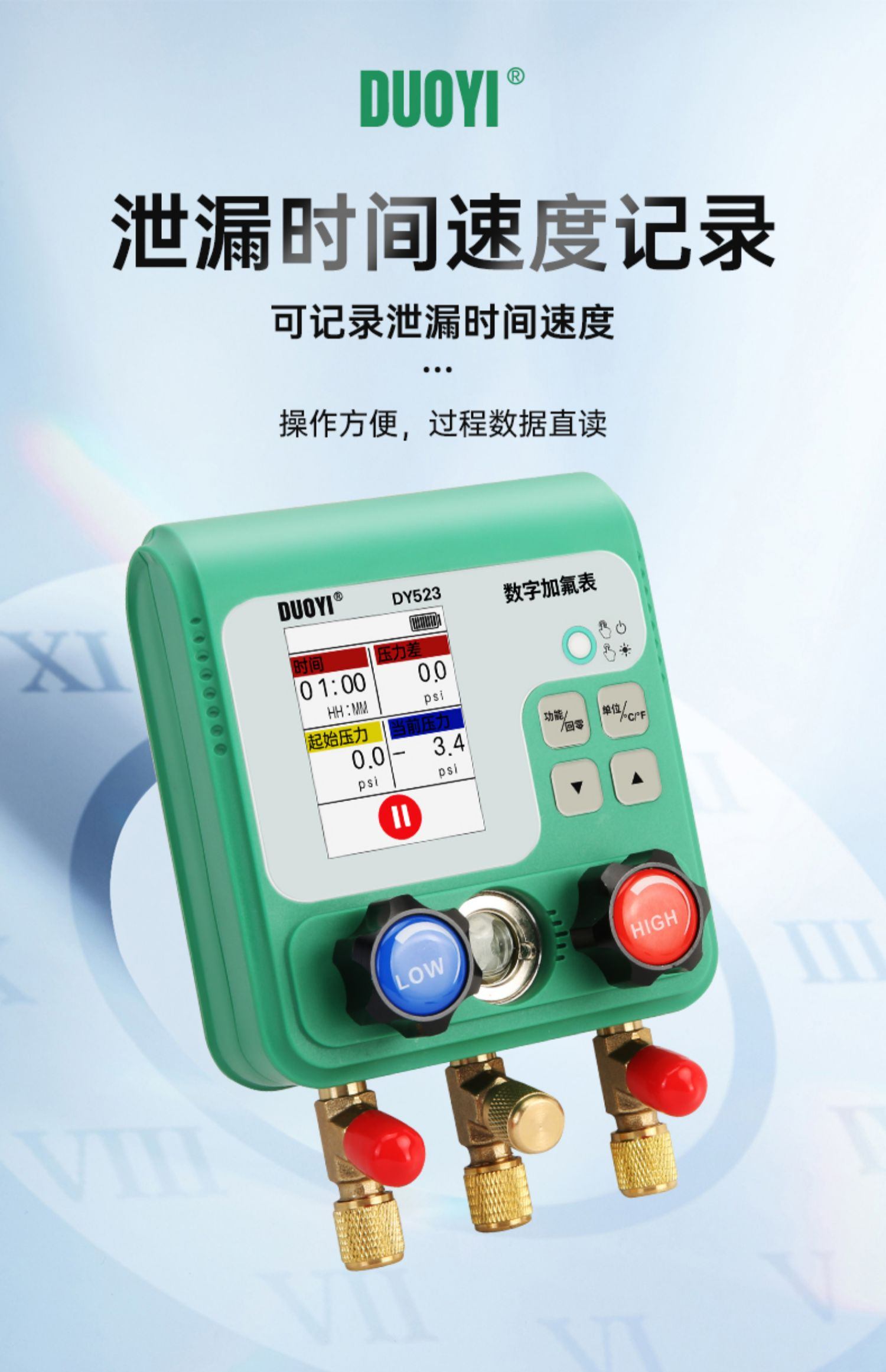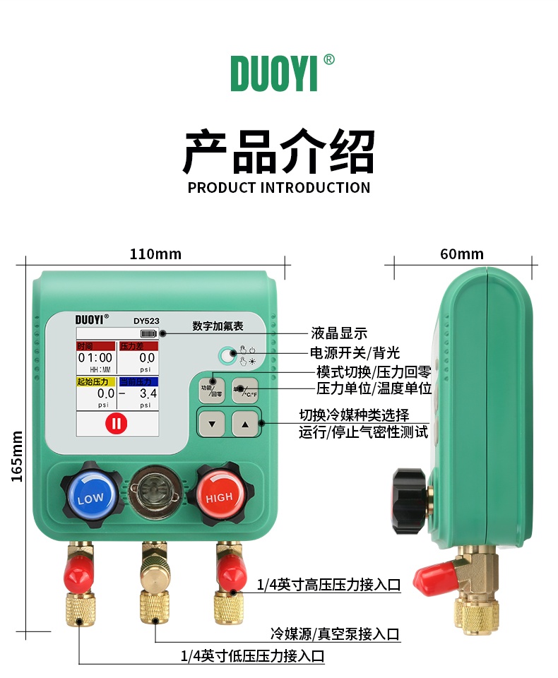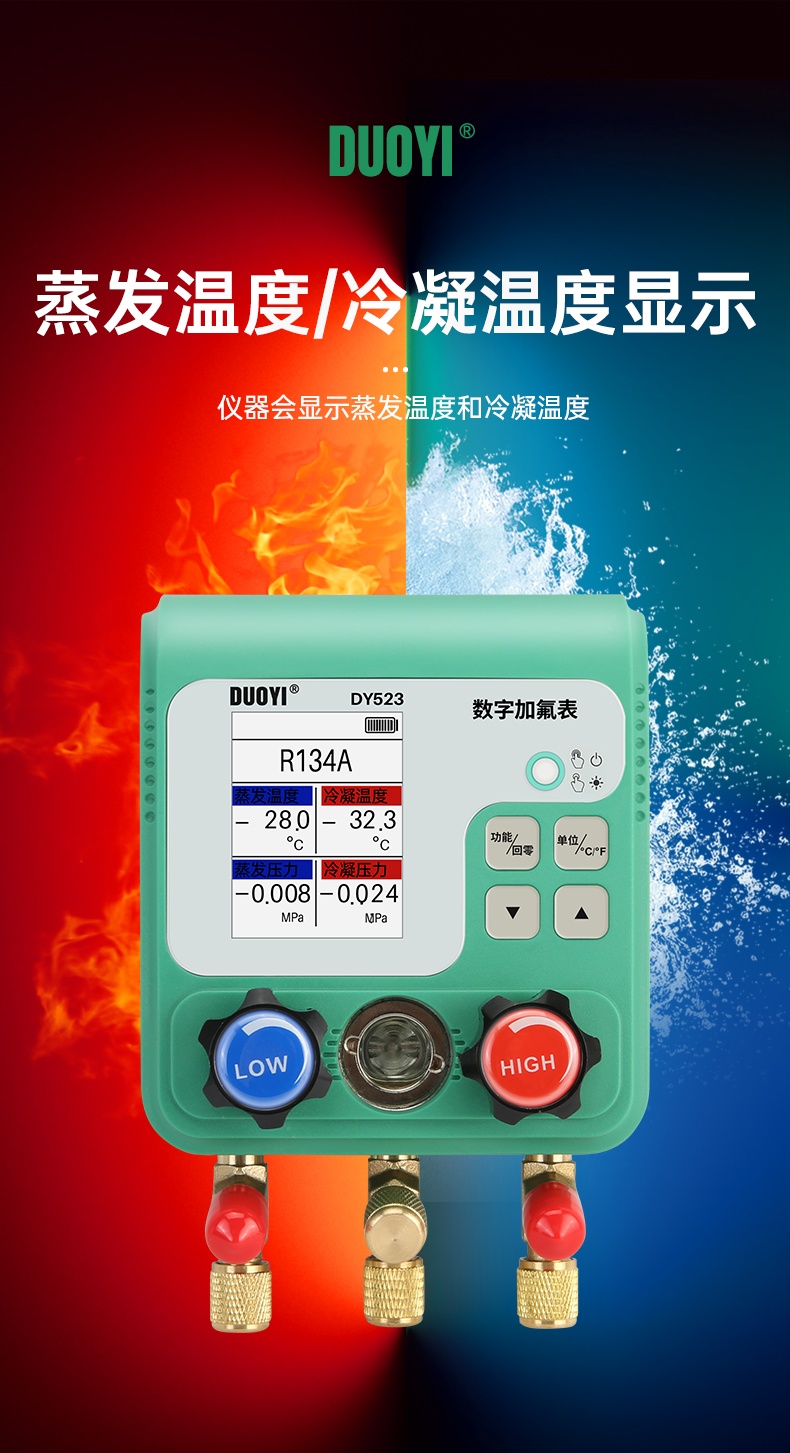 DY523电子空调冷媒加氟表组压力表汽车制冷剂加液维修真空表