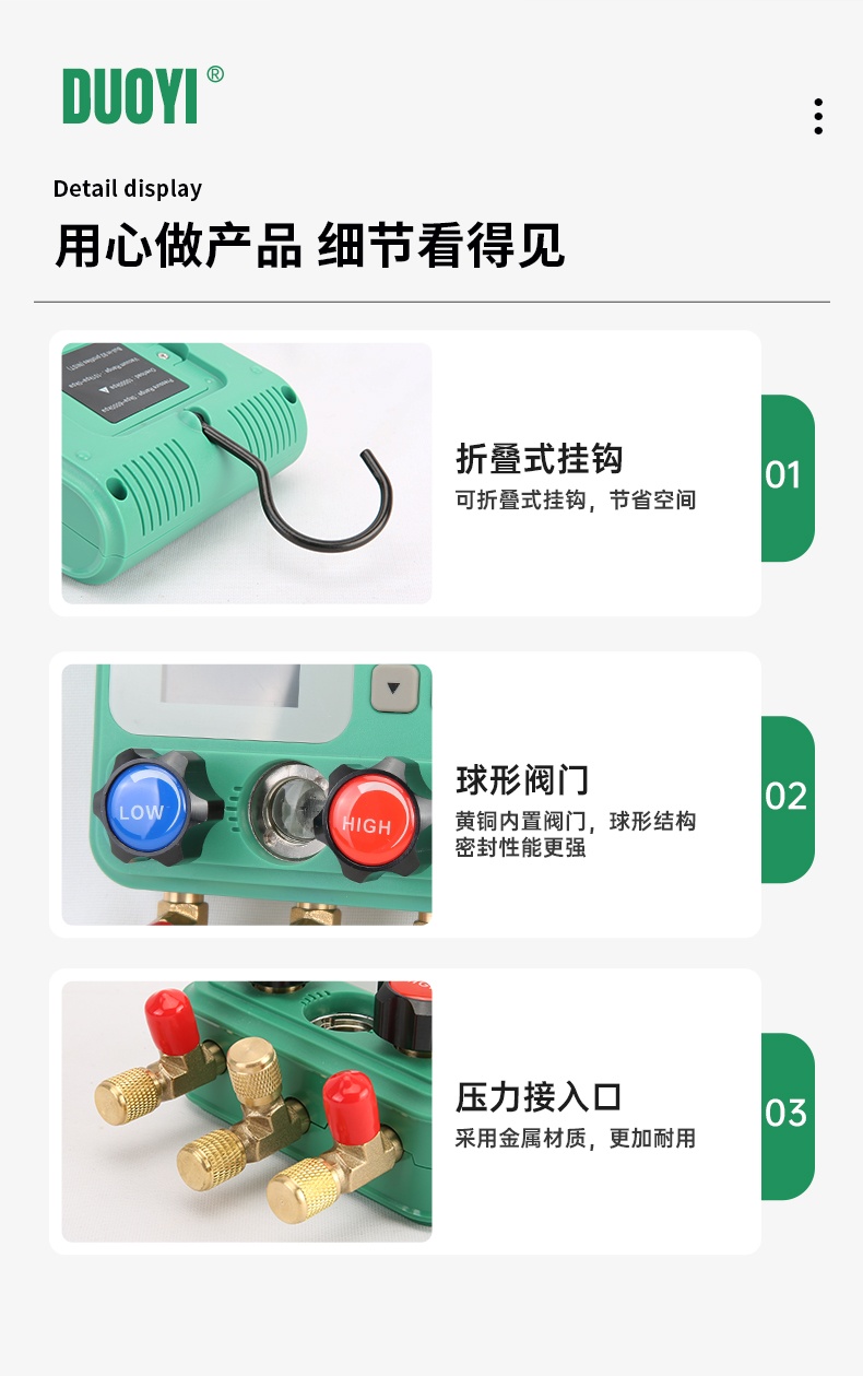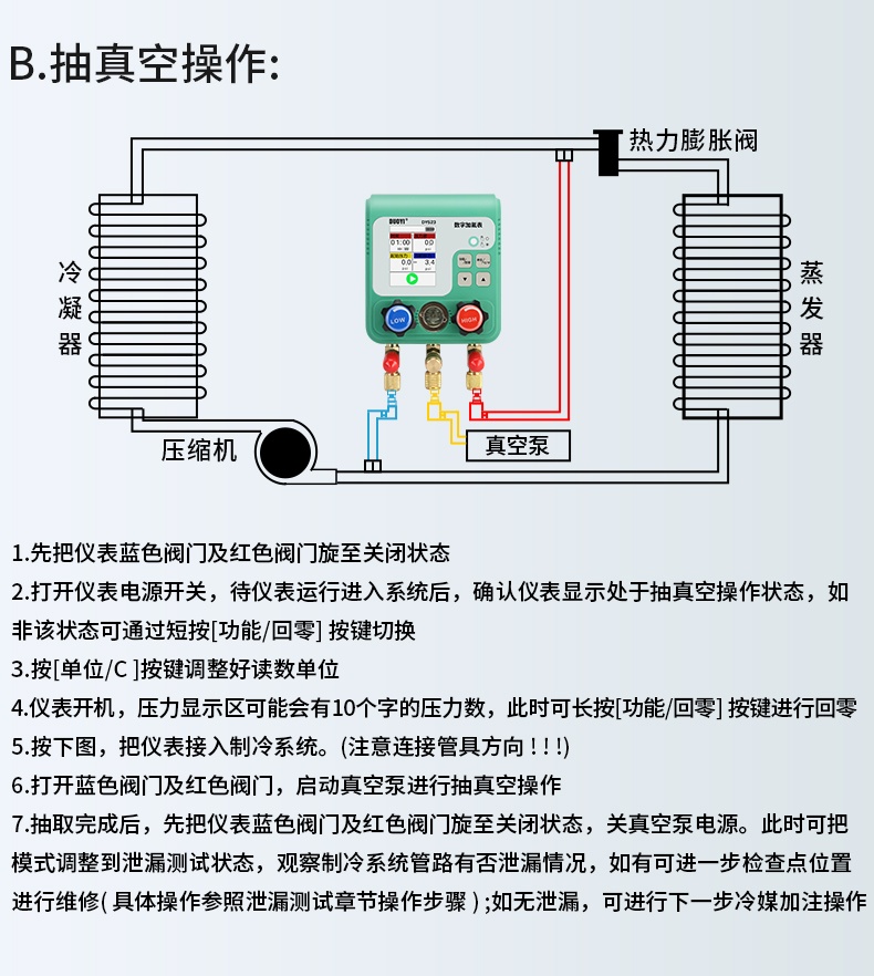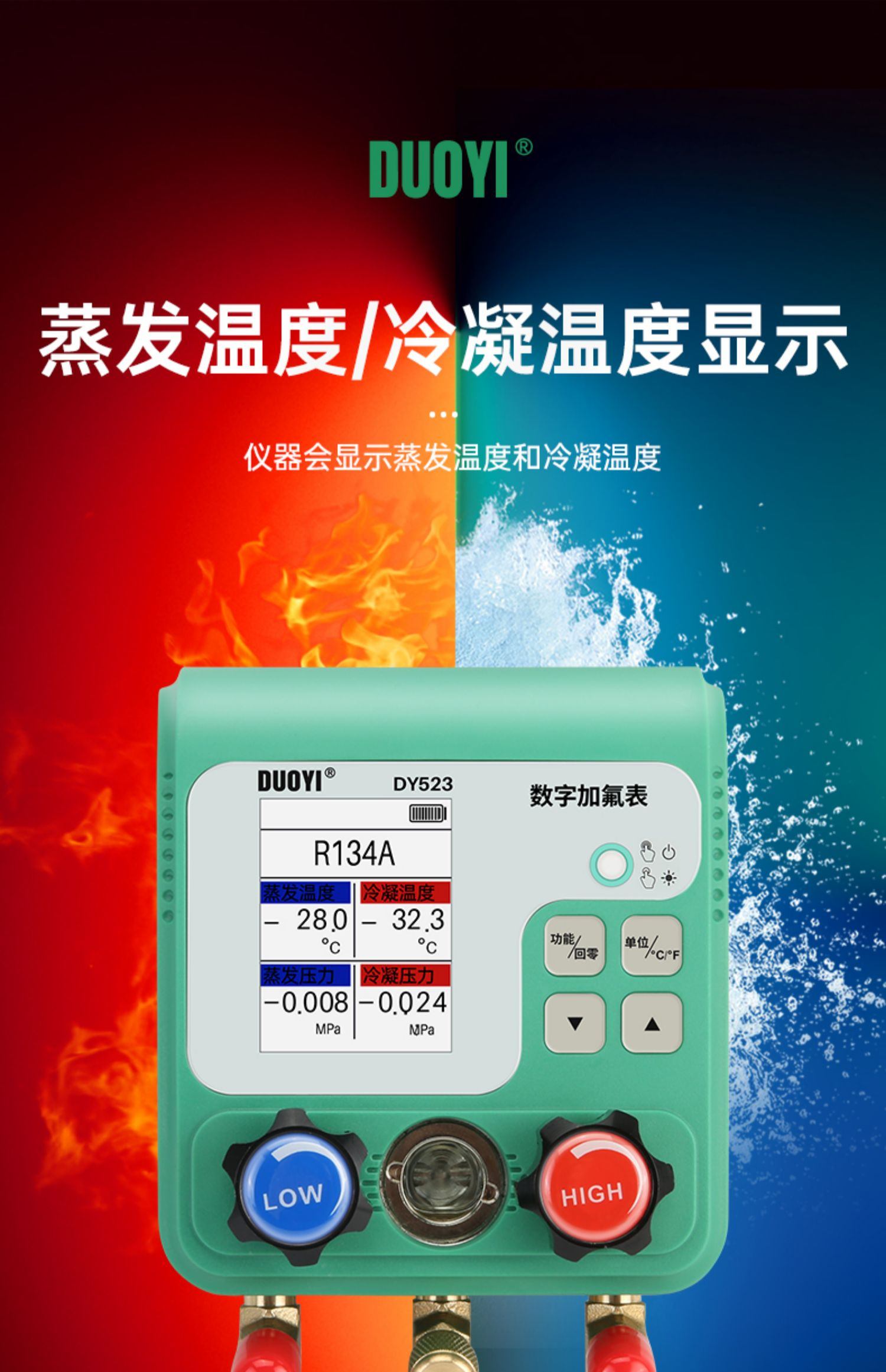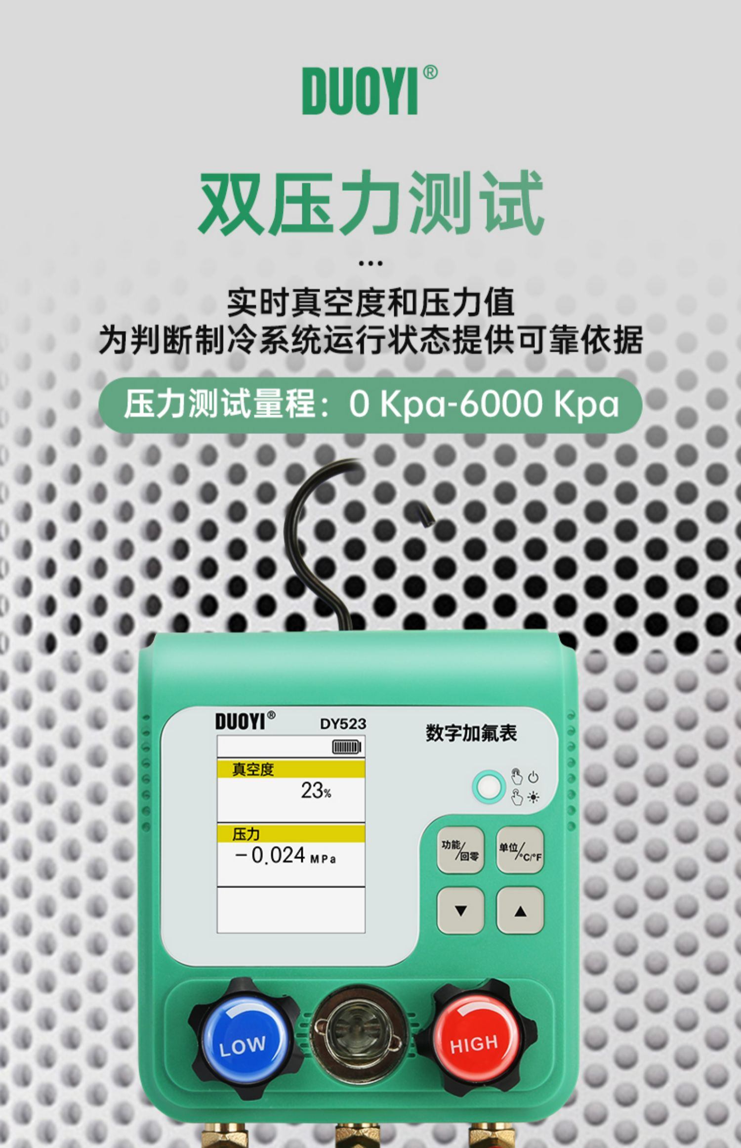 DY523电子空调冷媒加氟表组压力表汽车制冷剂加液维修真空表